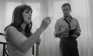It's more than just black-and-white for Jean-Louis Trintignant and Marie-France Pisier in Trans-Europ-Express.
