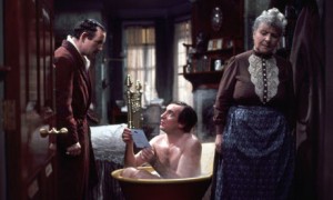 Colin Blakely (l.) is Watson, Robert Stephens is Holmes and Irene Handl is the housekeeper in The Private Life of Sherlock Holmes.