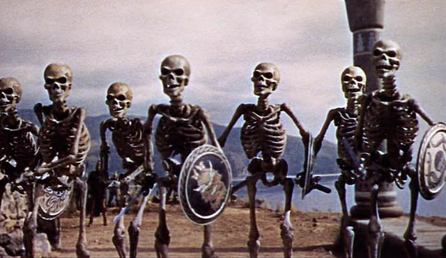 In 1963’s Argonauts, Jason (played by Todd Armstrong) faces off against behemoth bronze statues, multi-headed serpants and animated armed skeletons, all thanks to Harryhausen and his team.