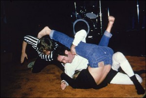 Kaufman’s “inter-gender” wrestling matches were no doubt exciting to witness in person. Watching them on disc, however, one can easily see how the events were staged — the shorter matches in arenas were more spontaneous, while the longer bouts in nightclubs play as completely faked, with Kaufman endlessly grappling his more attractive “shill” opponents.