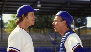 The sports movie concerns the threeway gameplay that evolves between an aging minor league baseball catcher (Kevin Costner,