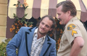 The mayhem starts with the suffocating, self-defeating plot: Ethan Inglebrink (TV actor Ronnie Gene Blevins) is a strung-out heroin addict who hasn’t gone past his front yard in nine years. He’s convinced that if he wins the Garden of the Year prize money, he’ll be able to pay his back rent to his neighbor, landlord and gardening competitor O’Hart (played in nutty costumes by the equally nutty Rip Torn, Men in Black). In reality, Ethan will just buy more heroin, which he secretly shoots up in the kitchen while visitors are in the next room. And they have no idea. Right.