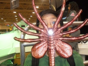 Fox went all out for its Comic Con booth, just as it did for the San Diego Comic-Con in July. Featuring such swag as a cardboard Alien facehugger fan (pictured) and T-shirts emblazoned with the question “Want a Hug?,” the oversized booth was set up like the series’ spaceship cryogenic stations, wherein attendees could get into a pod and have a “suspended animation” experience involving clips and sounds from the movie series.