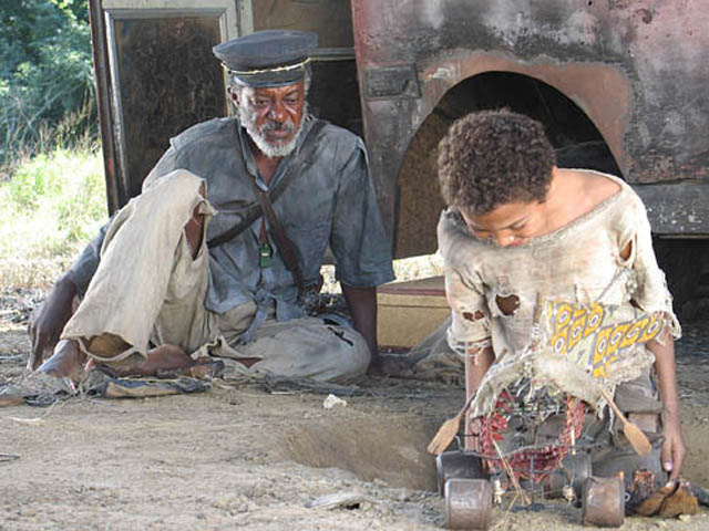 Sleepwalking Land is set in Mozambique in the midst of the country’s devastating civil war. Muidinga (Nick Lauro Teresa), an orphaned refugee, wanders the countryside in search of his mother. His only companion is an elderly storyteller (Aladino Jasse), and the only guide to finding his mother is a dead man’s diary. Together, the storyteller and diary lead him on a magical, and sometimes macabre, journey across war-torn landscapes to find the family he lost.
