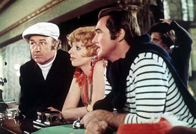 The ending of the film is famously not the original end. A new ending was shot after the movie’s production studio, 20th Century Fox, became anxious over the original conclusion, which finds Hackman and Reynolds gunned down on a beach and Minelli ending up alone. In the re-shot ending, the one that can be seen in the film, nobody is killed and all three stars are seen together years later in old-age makeup. Footage of the original murderous climax was included in Fox’s syndicated movie clips show That’s Hollywood back in the 1980s.