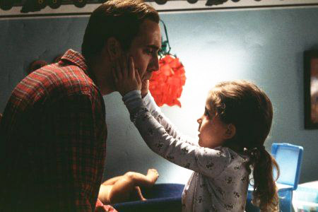 But, in a Christmas Carol-type move, Cage meets a man (Don Cheadle of Iron Man 2) holding up a convenience store and his life is changed — literally. When he wakes up the next morning, he’s in a house in New Jersey with a wife (Tea Leoni, Ghost Town), two kids, a minivan parked in the driveway and a job as a tire salesman. It’s a “glimpse,” Cheadle tells Cage, of the life he could have had — Leoni is an old girlfriend, the one he let get away, and over the next year, Christmas to Christmas, Cage learns how good life could have been.