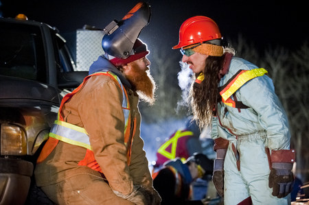Terry (David Lawrence, Who is KK Downey?) and Deaner (Paul Spence, Peepers) are hard-partying deadbeat morons who begin the movie by destroying their house and decide to beg their fickle friend Tron (Andrew Sparacino) to get them a hilariously hazardous job on an oil pipeline in Fort McMurray, a setting whose high-risk, high-pay lifestyle lends the first inkling of dark themes to what eventually becomes a surprisingly serious movie. Terry hooks up with a strip-club waitress named Trish (Terra Hazelton) and the inevitable rift between the two buds begins.
