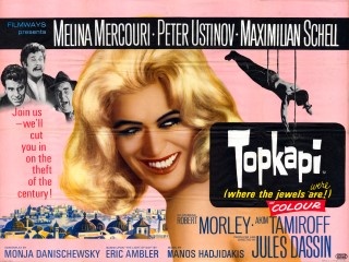 K-4. Topkapi – Director Jules Dassin’s frothy adventure movie features Melina Mercouri at her sultry best. Peter Ustinov, as two-bit hustler Arthur Simon Simpson, stole enough of the film to win an Oscar for Best Supporting Actor.