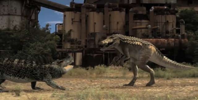 In the film, scientist Jason Drake (the late David Carradine, Dark Fields) has been holed up deep within a secret island laboratory of an unscrupulous biotech corporation meddling with the laws of nature, as isolated scientists are wont to do. When he turns his attention from mutating fruits and vegetables to alligators, crocodiles and dinosaurs, something’s bound to grow to horrific proportions and escape — like a gargantuan crocodile and an equally humungous alligator. So, when the titular Dinocroc and Supergator get loose, the two quickly enjoy an all-you-can-eat buffet of scientists, tourists, mercenaries and swimsuit models … until their inevitable showdown against each other.