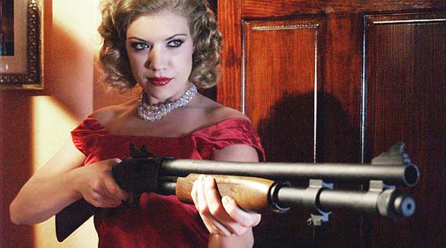 Fans of the ubiquitous Tiffany Shepis will probably enjoy Bonnie and Clyde Vs. Dracula the most. Putting on a deliciously trashy Southern drawl and nicely filling out some period dresses, Ms. Shepis goes to town as Bonnie, firing off shotguns, putting moves on horny marks, gurgling blood as a vampire in the final third and delivering a full frontal flash for her fans.