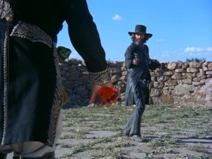 Fans of the filmmaker and his most famous movie should consider upgrading to the Blu-ray edition. Yes, the images are more precise, though not much richer in color. But it’s the sound that I grooved on, particularly the audio effects of Jodorowsky’s go-to sound man Gonzalo Gaviria, a legend of sorts in the audio community who’s best known in the U.S. for his work on The Exorcist. (The creaking of Regan’s head when it spun around was Gaviria twisting up a leather wallet filled with credit cards.) He does some outstanding work in El Topo, with its heightened sounds of leather boots trudging over dunes, creaking doors, swinging nooses and scissors snipping off false messiahs’ beards. It’s all right there, bouncing around the speakers and really adding to the show.
