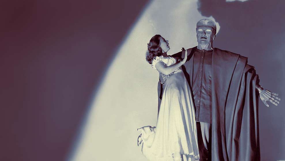Written by Thelma Schnee (TV’s Science Fiction Theatre) from Willis Goldbeck’s story, the intriguing film turns on the accidental death of a brilliant scientist (Ross Martin), a tragedy that prompts his lunatic father (Otto Kruger) and brother (John Baragrey) to transplant the dead man’s brain onto the body of a giant robot. The operation is successful, but the Colossus Robot mourns for his wife and child and doesn’t want to be the guinea pig in his father’s psychotic project and starts displaying homicidal behaviors.