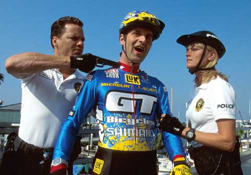 A team of good-looking Santa Monica police officers patrol their district’s beaches on bicycles in Pacific Blue, the television action crime series that ran for an impressive five seasons on the USA Network from 1996 to 2000.