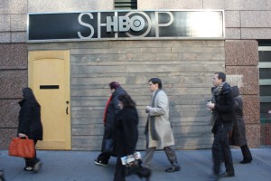 Better yet is what HBO did with its own retail store in the lobby of their home office in New York City at the corner of 42nd Street and Sixth Avenue. A quick tour reveals that the store is now dressed to kill (or drink, as it were) as a very cool-looking speakeasy, complete with vintage bottles of booze, glassware and newspapers, wooden floors, and period-style photos featuring members of the cast. Of course, as the store is now an “illicit” speakeasy, the front door is outfitted with a horizontal sliding peephole slat, allowing the costume-clad “bouncers” to check out the clientele before they enter!