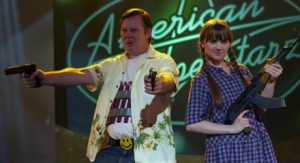 This time the subject is far-ranging: popular culture and the media. Joel Murray (The Artist) is the middle-aged, ill and recently-fired-from-his-job Frank, who joins forces with distraught teenage girl Roxy (Tara Lynne Barr, TV’s Zoey 101) to rid the world of annoying people. Their mission takes them on a cross-country trip to Los Angeles where they encounter all sorts of irritating folks—people chattering in a movie theater, folks who take up more than one parking spots, right-wing news analysts and, finally, the people involved in an American Idol-like music competition show. They all find themselves in Frank and Roxy’s cross-hairs…