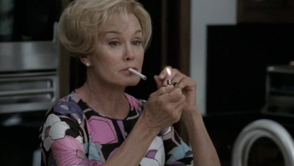 While frequently silly – are we to believe this family wouldn’t run screaming after the first home invasion or supernatural occurrence, let alone the second, third, etc.? – the show goes full-out camp in its treatment of the material. That’s best exemplified by Lange as nosy, in-the-know neighbor Constance, a Southern-fried, hard-drinking mother who punishes her Down’s-afflicted daughter by locking her in a room of mirrors. The other leads – Dylan McDermott (TV’s The Practice) and Connie Britton (TV’s Friday Night Lights) – have definitely had better material to work with, but give it their best, especially Britton, who continues to bring class and credibility to everything she does. Frances Conroy (Stone) is fun to watch as Moira, the home’s long-time maid whom appears much younger and more seductive than her years depending on who’s looking at her.