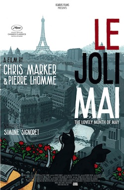 Le Joli Mai might not be the single best entryway to Marker’s very special world — The Case of the Grinning Cat, the La Jetee/Sans Soleil Criterion release, or his authoritative docu about the late Sixties, Grin Without a Cat, are more appropriate in that regard. But Mai is indeed a priceless portrait of a country in transition; it displays the reality that lay underneath the hip, glamorous Paris-set films the French New Wave made around the same time.