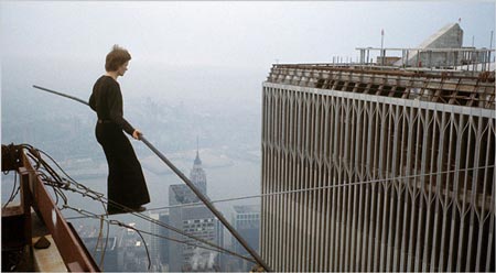 Back in the fall of 2008, I spoke with the lively Mr. Petit, who resides in upstate New York and has lived in America for more than 30 years. As he’d been hitting on the press trail for the past several months talking up both the book and the movie, I decided a fresher angle might concern his decision to live in the U.S., particularly as so many of his tightrope performances are mounted in Europe and Australia.
