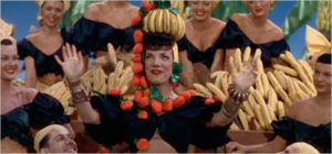 Nominally starring the lovely Alice Faye and featuring the scintillating talents of Benny Goodman and his Orchestra, the film is perhaps best remembered today for the efforts of Carmen Miranda, leading a corps of banana-wielding dancers in the scandalous “The Lady in the Tutti Frutti Hat.”