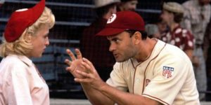 Oh, and in case you forgot, the film stars Tom Hanks (Inferno), Geena Davis (The Long Kiss Goodnight), Lori Petty (Point Break), Rosie O’Donnell, Jon Lovitz (TV’s Hot in Cleveland), and Madonna (Dick Tracy).