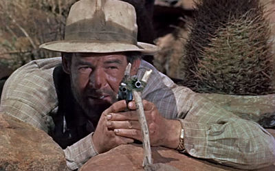 Robert Ryan (Caught) stars in the 1953 crime-drama Inferno as a crusty millionaire left in the desert to die by his wife (Rhonda Fleming, Cry Danger) and her lover (William Lundigan).