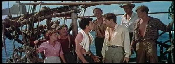 One of the earliest CinemaScope pictures, Beneath the 12-Mile Reef (1953) takes us deep into the crystal-clear, perilous waters off the Florida coast, where two rival sponge-diving families produce a boy (Robert Wagner, TV’s It Takes a Thief) and a girl (Terry Moore, Peyton Place) who of course fall for each other, hard.