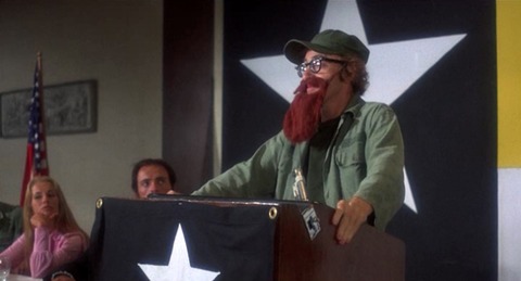 Allen stars as the remarkably named Fielding Mellish, a nebbish whose yen for a political activist (Louise Lasser, Crimewave) involves him in a South American country’s exploding revolution, up to and including his eventual and unwitting appearance as a Castro-like dictator.