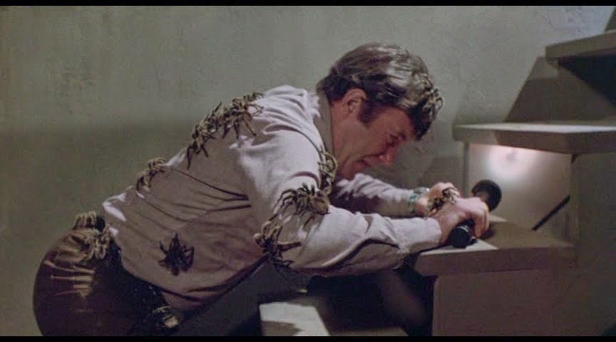 The one and only William Shatner (TV’s Star Trek) stars as vet “Rack” Hansen in the 1977 cult monster classic Kingdom of the Spiders.