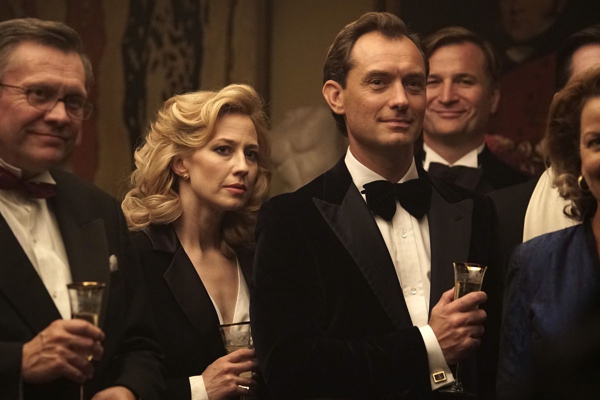 The unwelcome truths lying beneath the surface Rory and Allison’s marriage–the erosion of their mutual trust and respect for each other–begin to bubble up when Rory’s latest get rich quick scheme falls apart. Law lets the character’s self-absorbed desperation shine as he embarrassingly attempts to schmooze the British upper crust to the point where his own wife laughs in his face. Coon, who is one of the most quietly powerful actresses working today, infuses Allison with a coy yet smoldering core while conveying the years of pent-up resentment with just her facial features and body language.