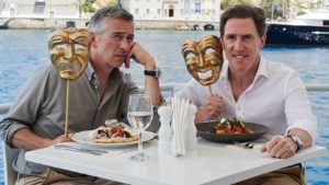 Actors Steve Coogan and Rob Brydon embark on multiple road trips through Europe including the UK, Italy, Spain, and Greece, sampling the restaurants, eateries, and sights along the way in The Trip: Four Course Meal.