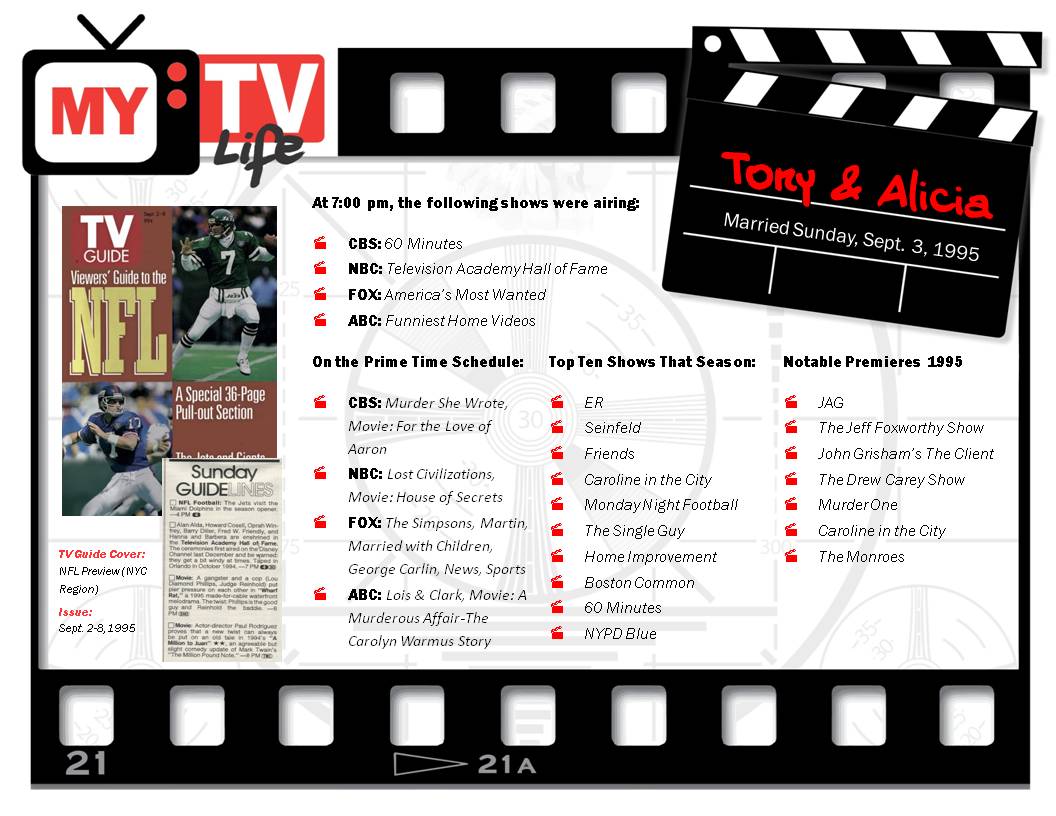 MyTVLife is a venture that provides decorative, high-quality certificates commemorating life events—birthdays, weddings or other personal touchstone dates—via what was being broadcast on all the major stations on that date, as per the corresponding issue of TV Guide.