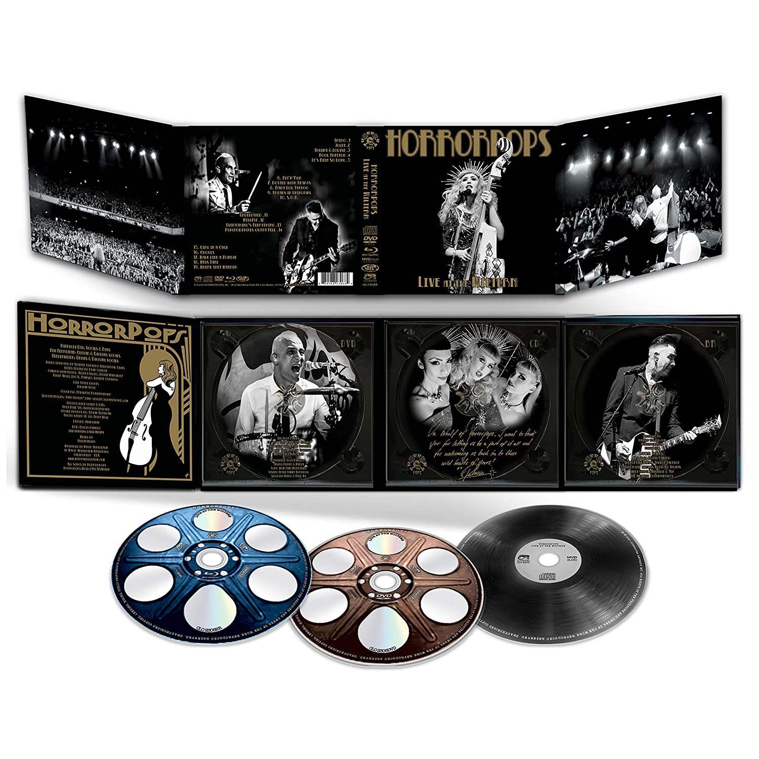Established in 1996 in Copenhagen Denmark, HorrorPops sound is still a delicious blend of 80’s new wave, punk, rockabilly, surf, and ska. With 3 acclaimed albums and heavy worldwide touring tucked comfortably in their back pockets, front woman Patricia Day, guitarist Kim Nekroman and drummer Henrik Niedermeier are back on stage proving that the demand for a Horrorpops return is higher than ever. Horrorpops: Live At The Wiltern is their 9-year long-awaited return to the stage and is represented by this stunning 68-minute concert film, filmed in 4K and containing all of their best-loved tracks including ”Walk Like A Zombie,” ”Miss Take” and ”Psychobitches Outta Hell”.