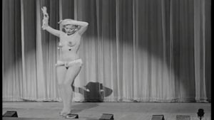 Both Peek-a-Boo (1953) and “B” Girl Rhapsody (1952) are directed by burlesque impresario Lillian Hunt, who shot the film in a style that preserves the theatrical experience, never allowing the viewer to cross the footlights, never affording the audience too close a view. The results are two time capsules that offer priceless front-row views of old-school bump and grind (shot on location at the New Follies Theater in Los Angeles), a treat for nostalgic octogenarians and millennial New Burlesque fans alike.