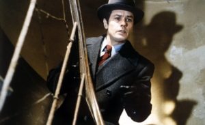 For his part, Delon gives an excellent lead performance, giving Klein the necessary degree of initial unctuousness (as he fleeces a Jewish seller of a painting in his first scene) and obsessive desperation. The film connects to Delon’s previous work, as he had already played in Louis Malle’s off-kilter adaptation of Poe’s doppelganger story, “William Wilson” (in the anthology film Spirits of the Dead) and is clad in a trenchcoat and fedora here, conjuring up memories of his performance as the emotionless hitman in Melville’s Le Samourai.
