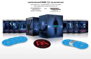 All in, the collection includes 9 Blu-ray discs, including the out-of-print 3D Blu-ray of Paranormal Activity: The Ghost Dimension, digital codes for each film, and an exclusive “home security sticker.”