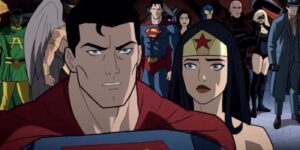 Justice League: Crisis on Infinite Earths – Part Three features returning popular voice cast members: Jensen Ackles (Supernatural, The Boys) as Batman/Bruce Wayne, Emmy winner Darren Criss (The Assassination of Gianni Versace: American Crime Story, Glee) as Superman & Earth-2 Superman, Meg Donnelly (Legion of Super-Heroes, High School Musical: The Musical: The Series,) as Supergirl & Harbinger, and Stana Katic (Castle, Absentia) as Wonder Woman & Superwoman.