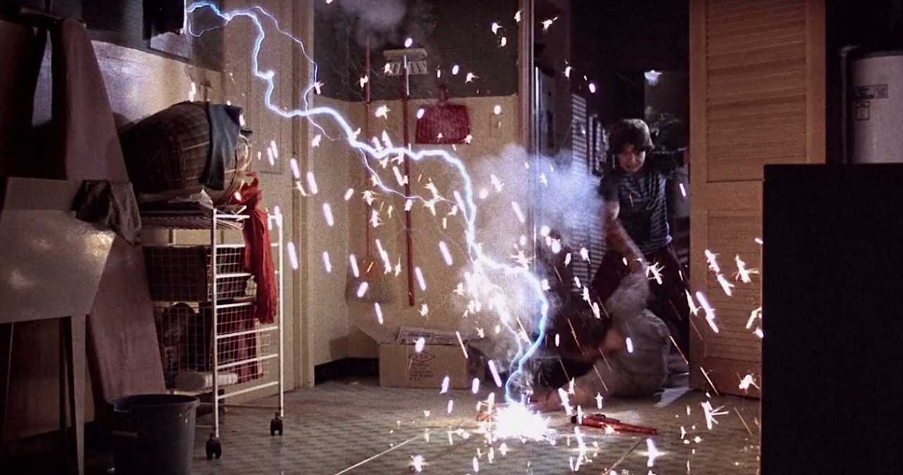 In the 1988 chiller Pulse, an intelligent pulse of electricity is moving from house to house. It terrorizes the occupants by taking control of the appliances, either killing them or causing them to wreck the house in an effort to destroy it. Then it travels along the power lines to the next house, and the terror restarts. Having thus wrecked one household in a quiet neighborhood, the pulse finds itself in the home of a boy’s divorced father whom he is visiting. It gradually takes control of everything, badly injures the stepmother, and traps father and son, who must fight their way out.
