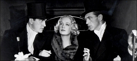 Fredric March (l.), Miriam Hopkins and Gary Cooper hit a bump in the road in their Design for Living.