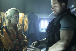 The film takes its narrative from Escape From New York: Guy Pearce (HBO’s Mildred Pierce) is Snow (the Snake Plissken role), a wrongfully imprisoned, wise-cracking convict who’s sprung by the suits to stage a one-man rescue mission of the President’s daughter Emilie (Maggie Grace, Faster). Emilie is on a humanitarian mission at an orbiting space penitentiary, you see, which has resulted in her capture by a group of nutso inmates who have broken free of the statsis they’re kept in while incarcerated. It’s up to Snow to infiltrate the facility, track down Emilie, bust her out and return them both to Earth. If all goes smoothly and the zillion-to-one odds are conquered, Snow’s sentence will be terminated and he’ll be a free man. But only if the aforementioned suits are in the mood…