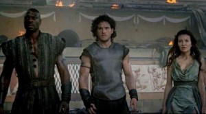 Since this is ancient Italy, poor boy Milo is a slave and a gladiator. And that part of Pompeii‘s story has plenty of similarities to Ridley Scott’s much more brilliant 2000 film Gladiator. Producer Jeremy Bolt (Resident Evil: Retribution) even points out the similarity in his commentary with director Paul W.S. Anderson (The Three Musketeers), who quickly says that Pompeii is very different. Well, yes, it’s got a volcano and isn’t as good.