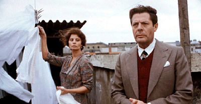 Though it’s set in Rome on the historic day in 1938 when Benito Mussolini and the city first rolled out the red carpet for Adolf Hitler, the film takes place entirely in a working-class apartment building, where an unexpected friendship blossoms between a pair of people who haven’t joined the festivities: a conservative housewife and mother tending to her domestic duties and a liberal radio broadcaster awaiting deportation.