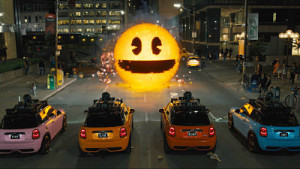 Sandler is Sam Brenner, a one-time Eighties video game champion whose digital talents haven’t taken him very far in his adult life, even as his fellow old-school buddy Will Cooper (Kevin James, The Dilemma) has become President of the United States. Things quickly change after interstellar aliens misinterpret video-feeds of classic arcade games as a declaration of war and then attack Earth using large-scale, pixelated versions of such games as Pac-Man, Galaga, Centipede, and Space Invaders. When the military fails to quell the invasion, President Cooper calls in Brenner and a dysfunctional team of old-school arcaders (Game of Thrones‘ Peter Dinklage and Thanks For Sharing‘s Josh Gad) to take on the aliens and save the planet.