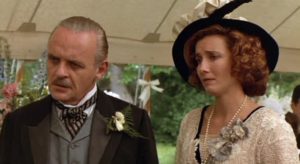A saga of class relations and changing times in an Edwardian England on the brink of modernity, the film centers on liberal Margaret Schlegel (Thompson), who, along with her sister Helen (Helena Bonham Carter, Burton and Taylor), becomes involved with two couples: wealthy, conservative industrialist Henry Wilcox (Anthony Hopkins, Thor) and his wife Ruth (Vanessa Redgrave, Julia), and the downwardly mobile working-class Leonard Bast (Samuel West) and his mistress Jackie (Nicolla Duffett).