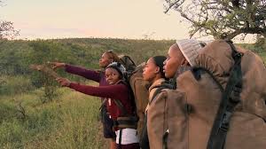 Set in the South African iMfolozi wilderness, in the oldest game park in Africa, the 2018 British documentary Sisters of the Wilderness tells the story of five young Zulu women from underprivileged backgrounds going into the wilderness for the very first time, carrying on their backs all they need for a life-changing journey of self-discovery. Led by Lihle Mbokazi, the first black South African woman wilderness guide, they walk in big game country and camp under the stars, totally surrounded by wild animals, are exposed to the elements and face emotional and physical challenges as