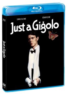 The plot follows Paul von Przygodski, a Prussian WWI vet (Bowie) recovering from a bomb attack only to find that his family’s wealth is gone. He proceeds through a few menial jobs, finally discovering steady work as a gigolo, working under a renowned madam (Marlene Dietrich, The Scarlet Empress), headquartered in a ritzy hotel. Along the way he is aided by a fellow veteran turned Nazi party organizer (David Hemmings, who also directed) and has flings with a revolutionary (Sydne Rome, What?) and a society widow (Kim Novak, Pal Joey), both seeking a sophisticated escort and lover.
