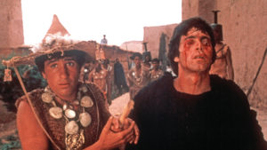 His fourth film is the beautifully transcendent The Gospel According to Matthew (1964), in which Pasolini presents the humble Christ, seen not as a majestic figure but as a common man touched by grace and compassion. Pasolini mixes anachronistic and historically inaccurate (but aesthetically consistent) elements, such as Odetta’s “Motherless Child” being included on the soundtrack.