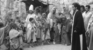 Pasolini’s own short documentary, “Scouting in Palestine,” shows him searching for locations for Gospel in Israel and Jordan. Pasolini narrates the footage that was shot in those countries, noting his fascination with the countries and their inhabitants, but also registering that these locations were “totally unusable for our film.” He thus felt “disrespectful” on occasion just taking a sight-seeing jaunt where he would stop and talk to the locals on-camera. At times he interviews some of them, as at a kibbutz, which clearly aligned with his Marxist beliefs, or with the Jordanian children, whom he found to have a “savage, pre-Christian gentleness.” (A wonderfully poetic oxymoron.)